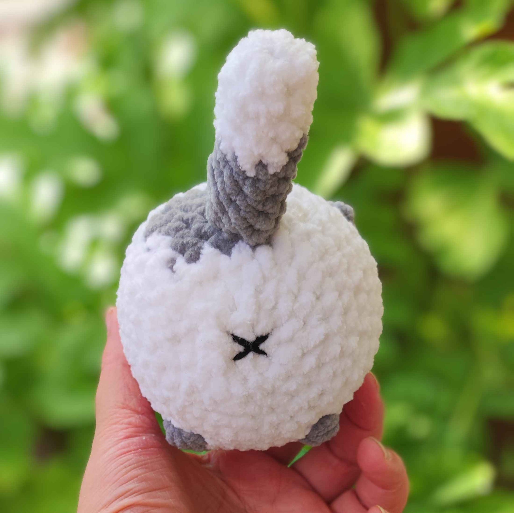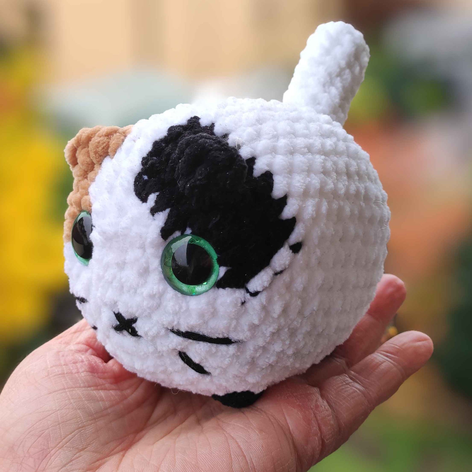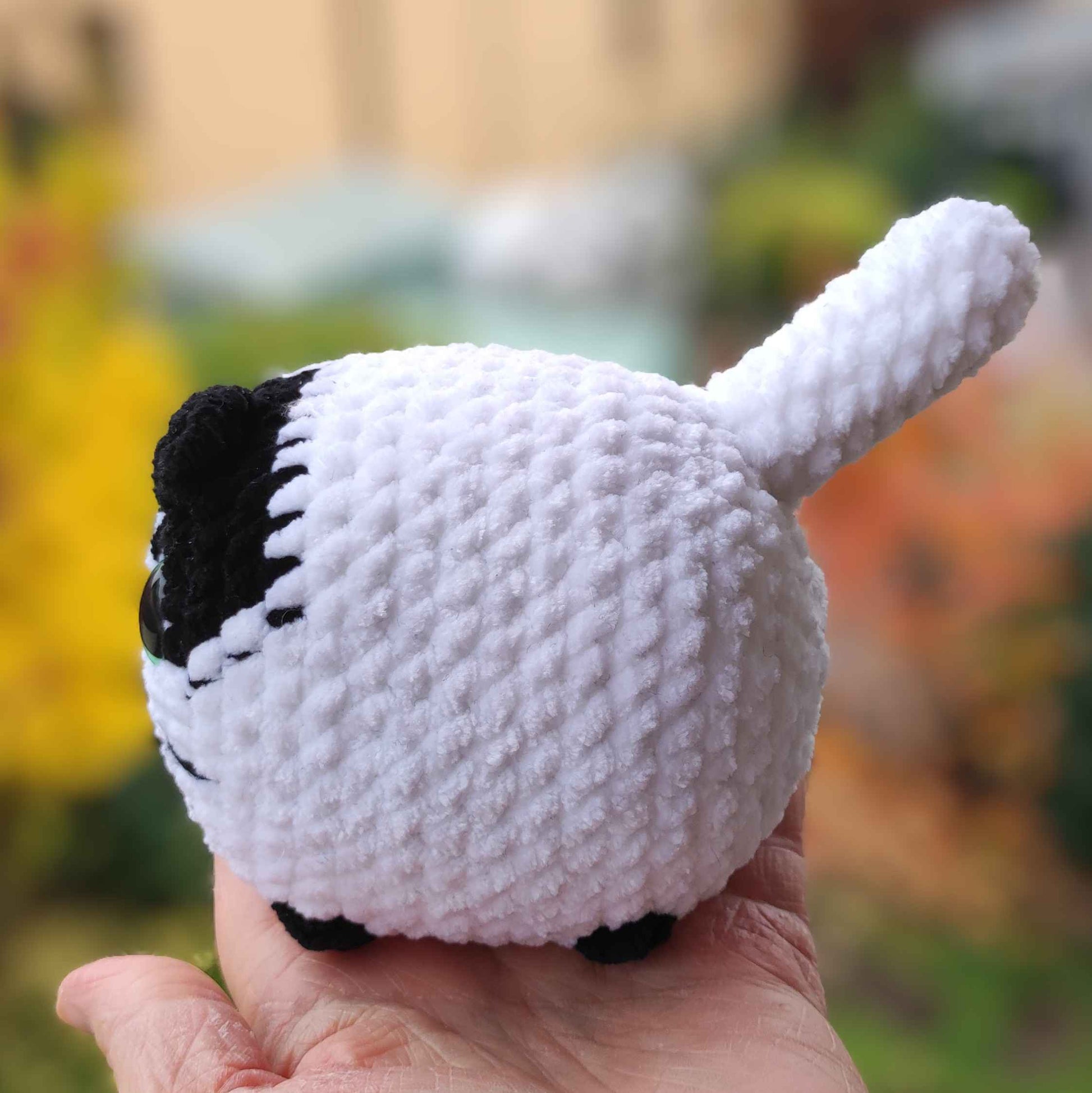 Mit Flecken an Ohr, Beinchen und Schwanz. Augen wahlweise handbemalt oder schwarz.