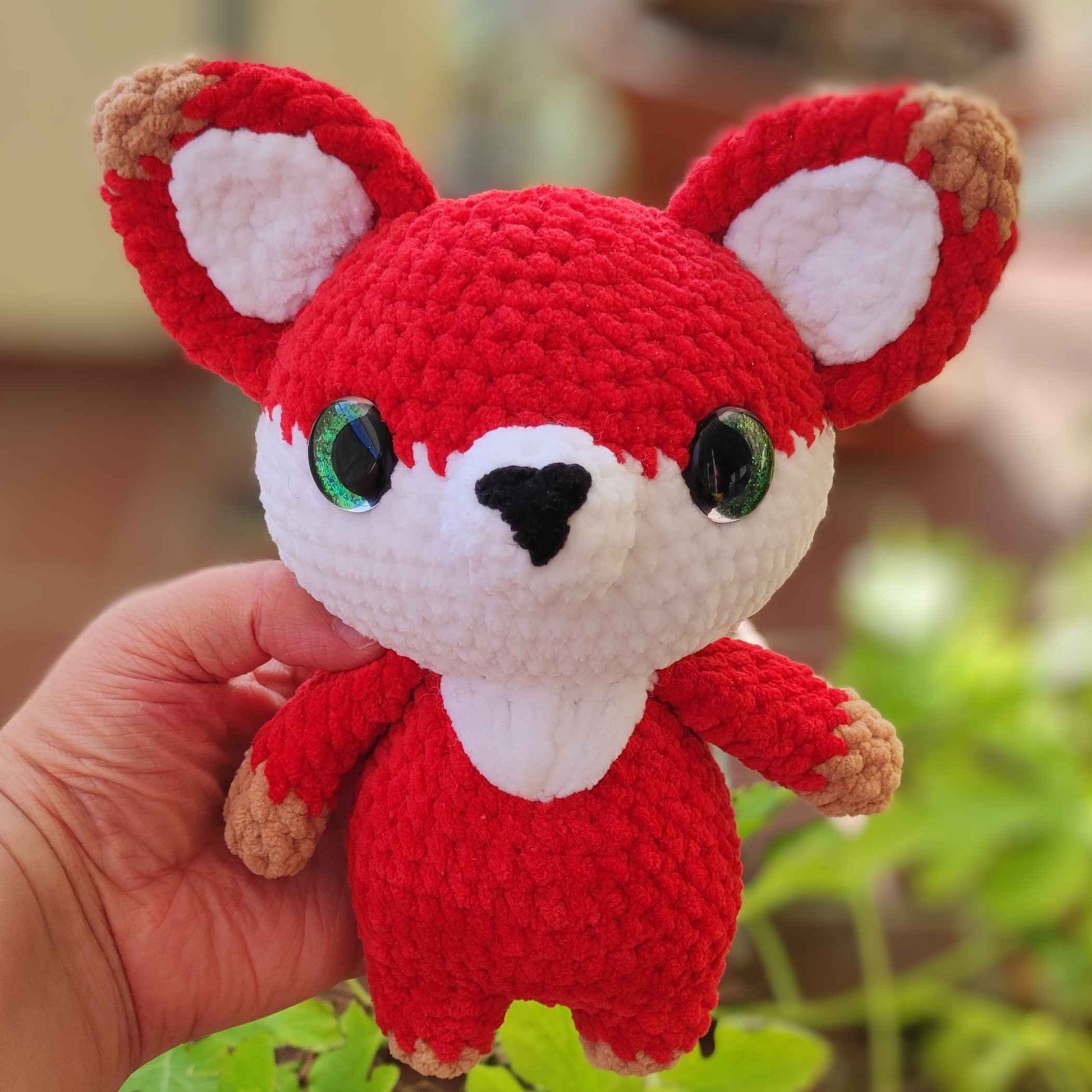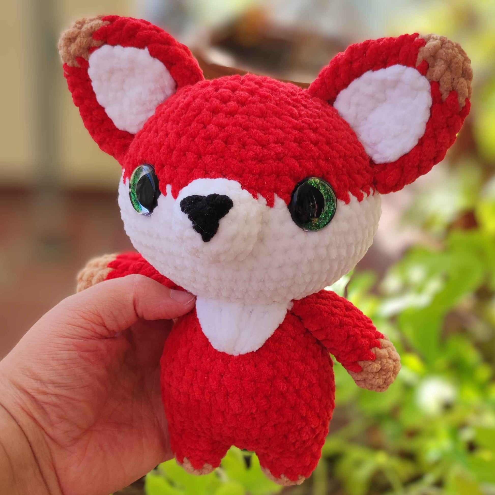 ✨ Handgefertigter Fuchs, der dich mit seinen flauschigen Pfötchen und den handbemalten Augen verzaubert. Perfekt zum Kuscheln oder Dekorieren – ein kleiner Freund für jeden Tag!
